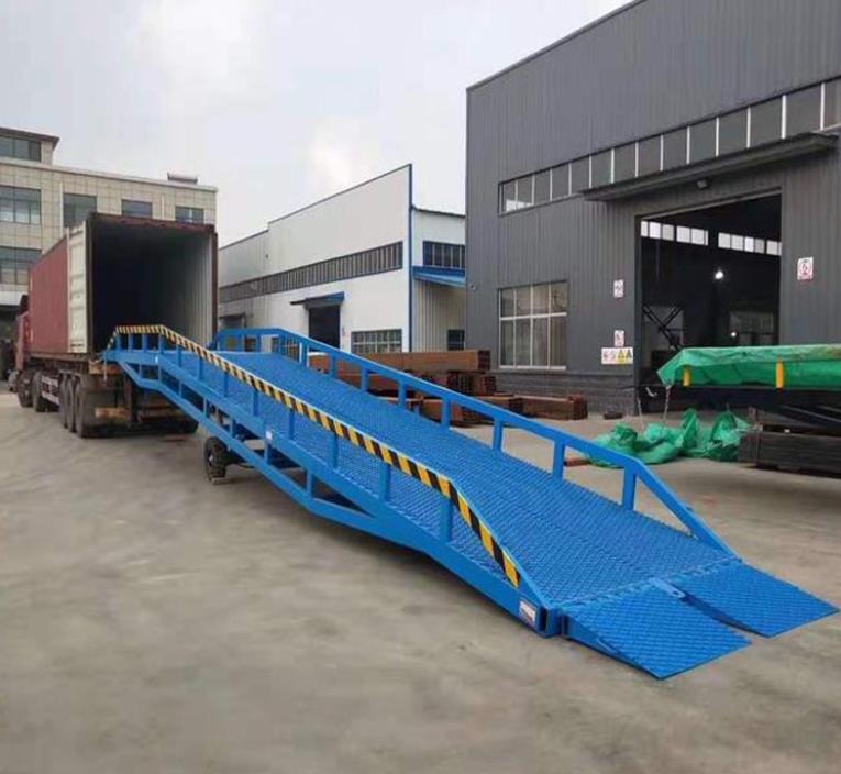 移動(dòng)登車(chē)橋是實(shí)現(xiàn)貨物快速裝卸的專(zhuān)用輔助設(shè)備,它的高度調(diào)節(jié)功能使貨車(chē)與庫(kù)房的貨臺(tái)之間架起一座橋梁,叉車(chē)等搬運(yùn)車(chē)輛通過(guò)它能直接駛?cè)胴涇?chē)內(nèi)部進(jìn)行貨物的批量裝卸,僅需單人作業(yè),即可實(shí)現(xiàn)貨物的快速裝卸。移動(dòng)液壓登車(chē)橋使企業(yè)減少大量勞力,提高工作效率,獲取更大經(jīng)濟(jì)效益。臺(tái)面均設(shè)計(jì)為網(wǎng)格狀鋼板,這種結(jié)構(gòu)能保證具有很好的強(qiáng)度,又具有防滑功能,還能方便地清掃工作臺(tái)面,使它能經(jīng)常地保持清潔、美觀。移動(dòng)液壓登車(chē)橋無(wú)須外接電源,通過(guò)手搖泵做動(dòng)力能輕松地在其整個(gè)調(diào)整范圍內(nèi)按50mm的倍數(shù)進(jìn)行高度的調(diào)整。可以充分適應(yīng)各種不同高度的貨車(chē).
