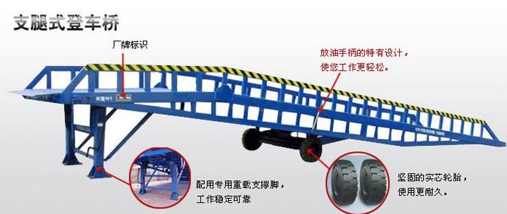 2、支持是登車橋操作的一項(xiàng)重要準(zhǔn)備作業(yè),應(yīng)挑選平坦的地上,如地基松軟或崎嶇不平,有必要用枕木墊實(shí)后,才可進(jìn)行作業(yè)。